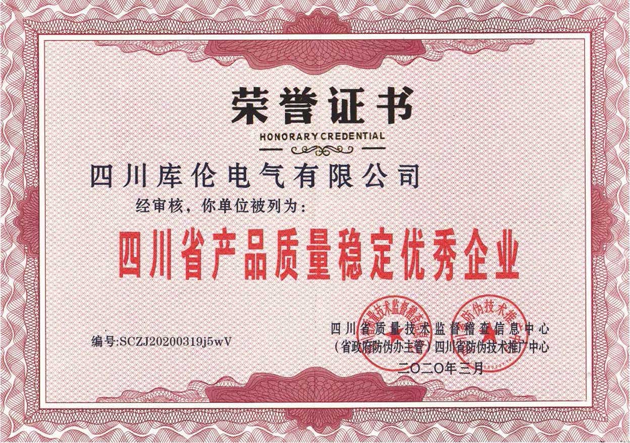 恭贺库伦电气荣获四川省产品质量稳定企业荣誉称号